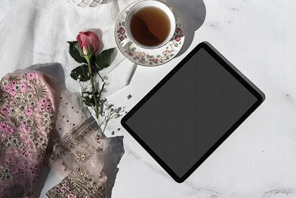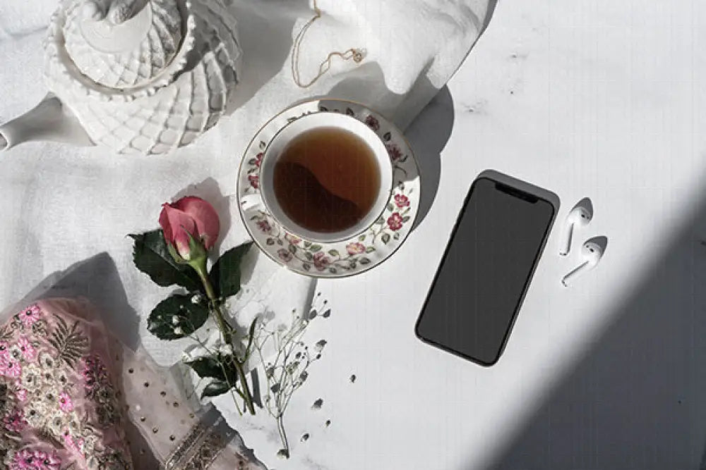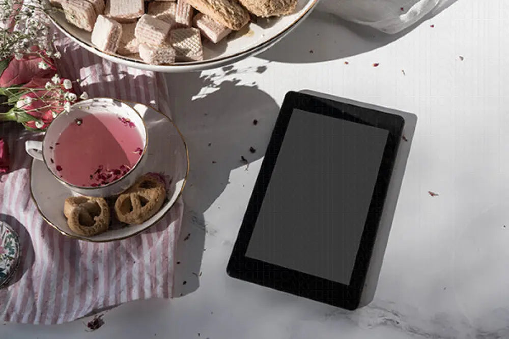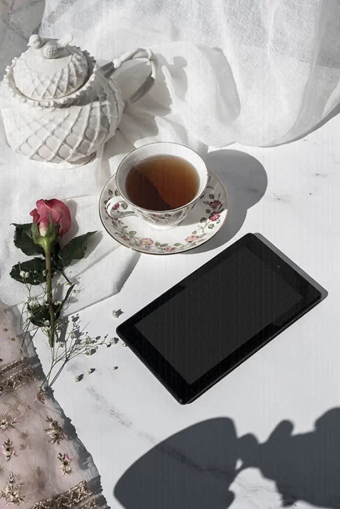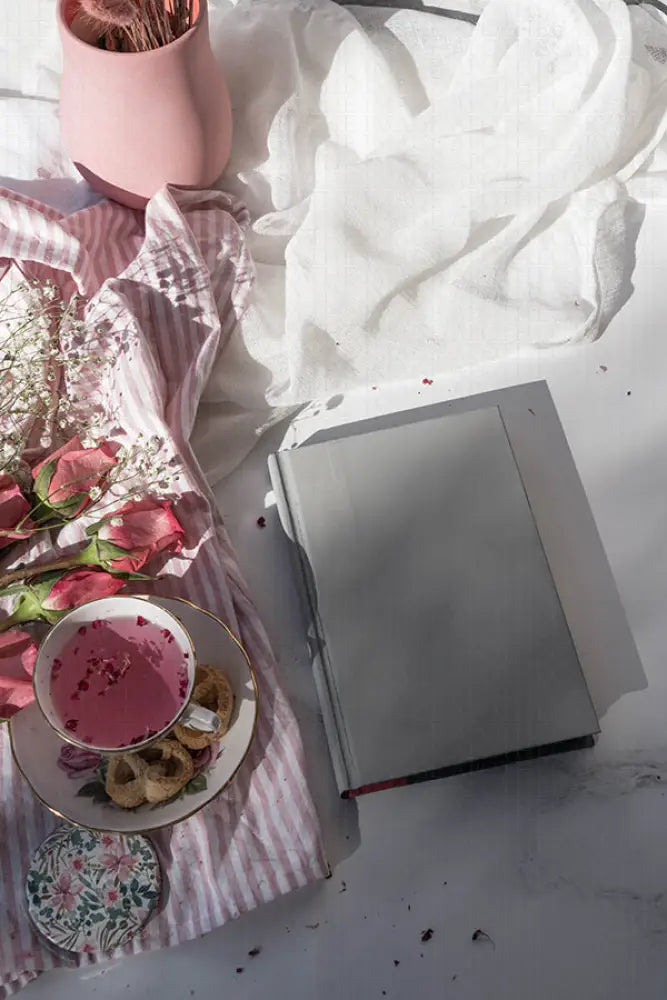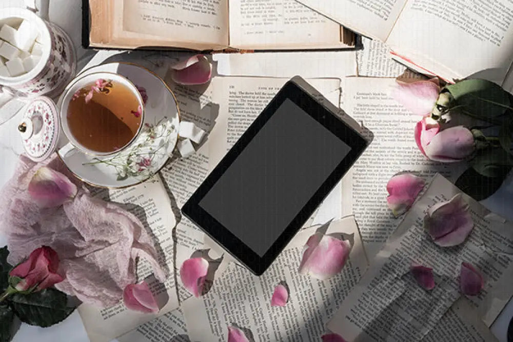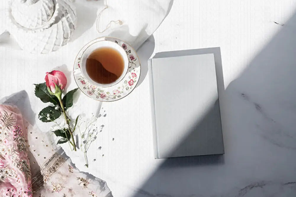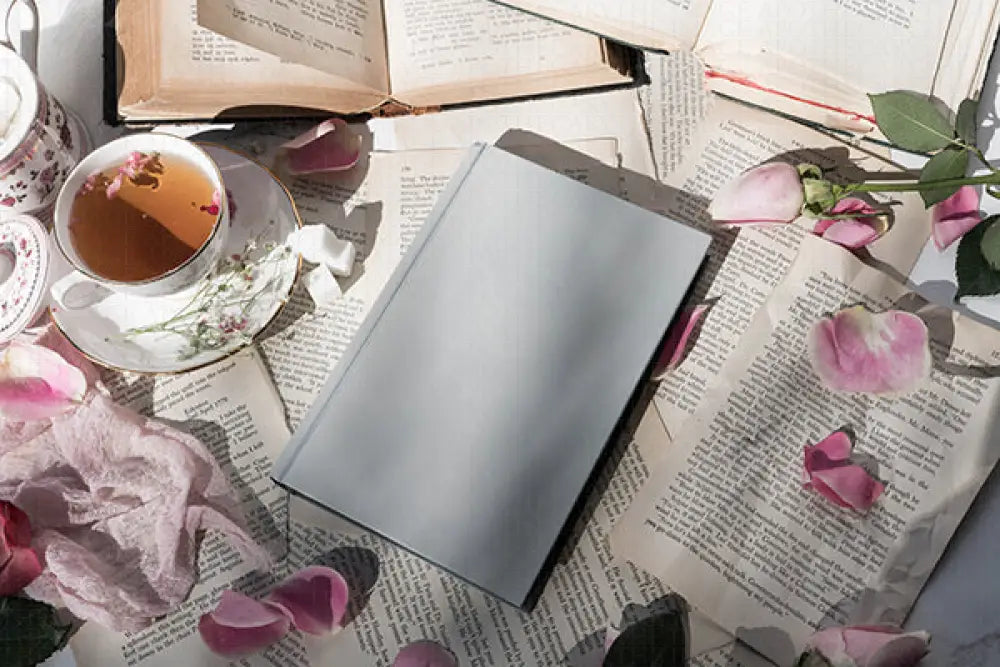 Enjoy a cup of tea with dainty features and floral elements, sure to charm any reader to sit with a cup of tea and read.
