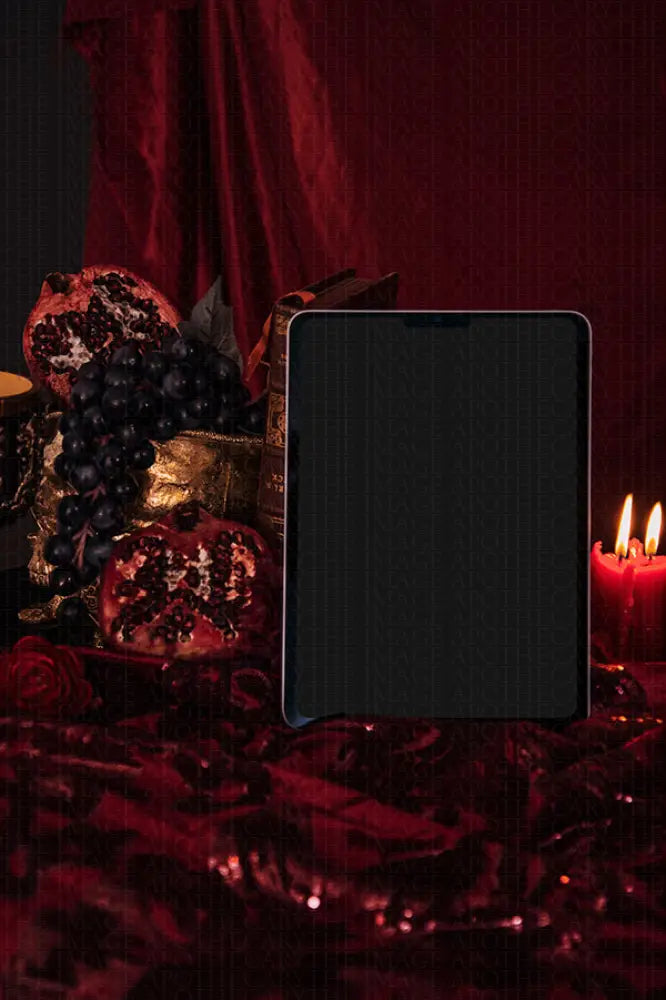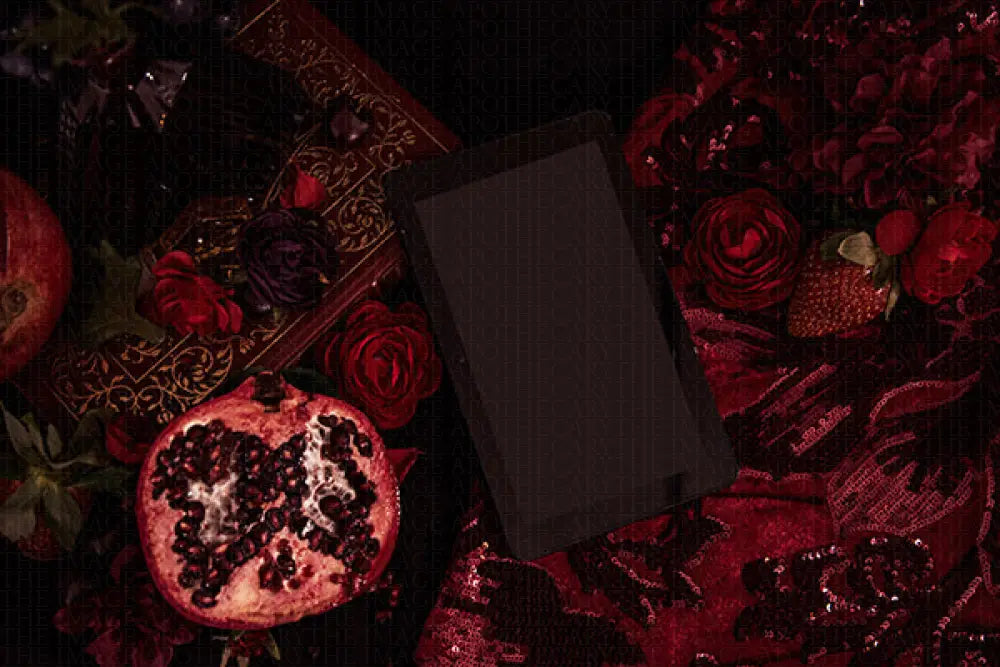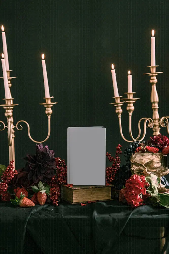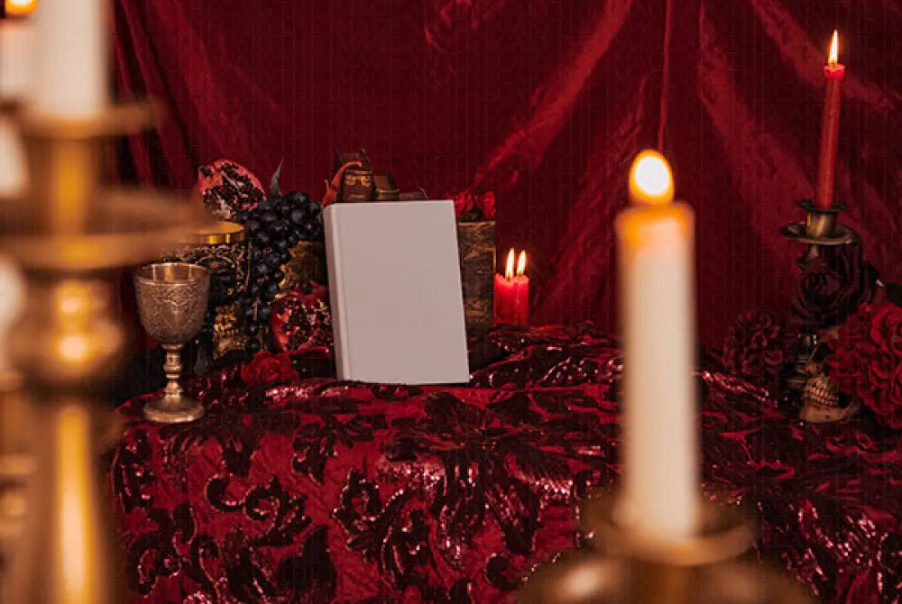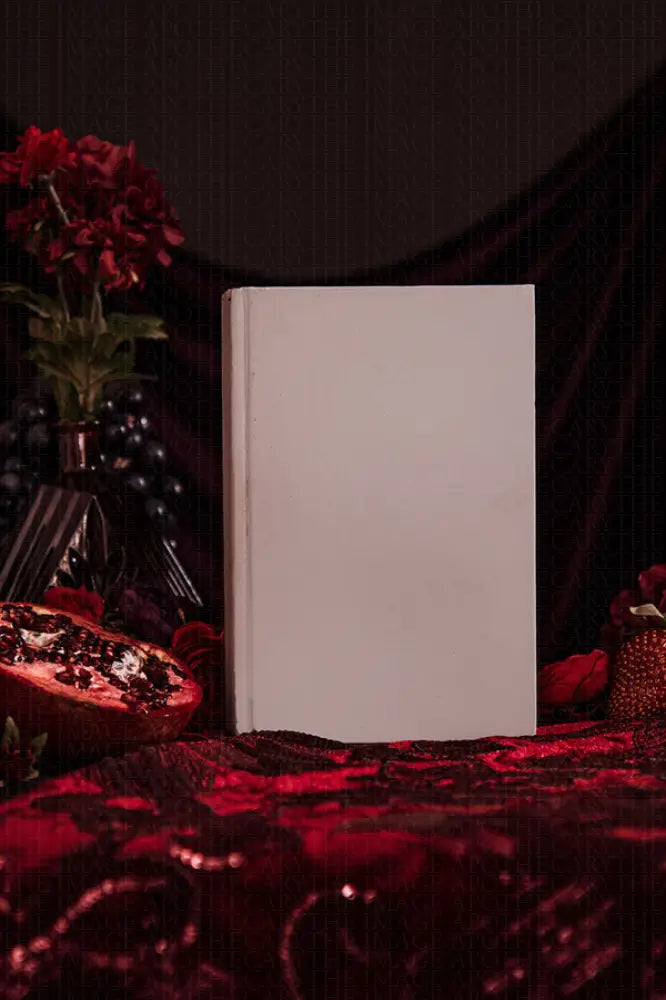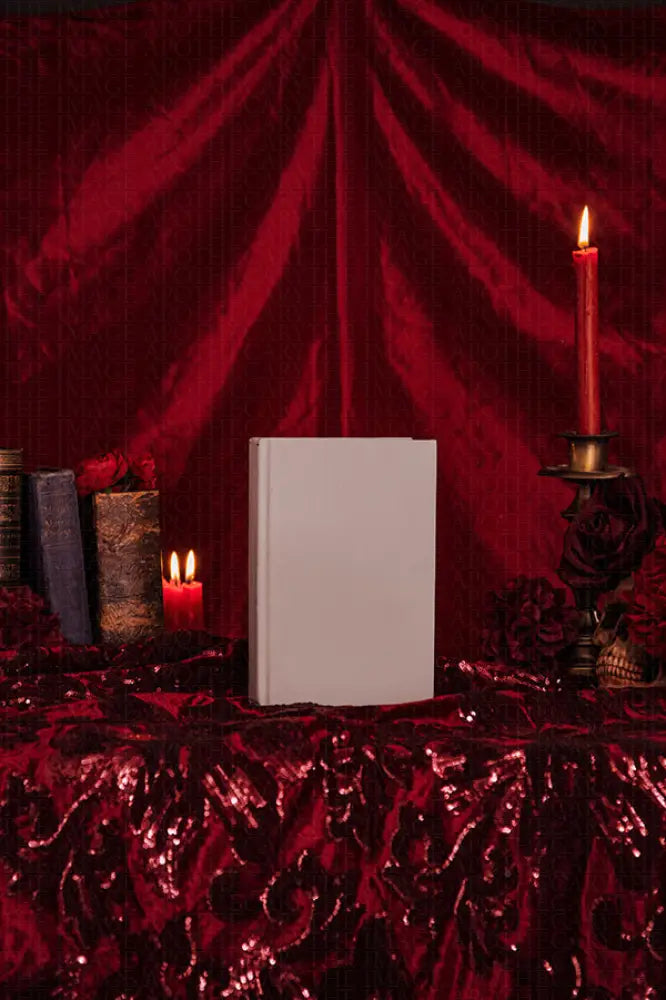 mesmerizes with its deep reds and ornate gold accents, perfectly capturing a dark, elegant fantasy aesthetic that beckons authors and book lovers into a world of mysterious allure.