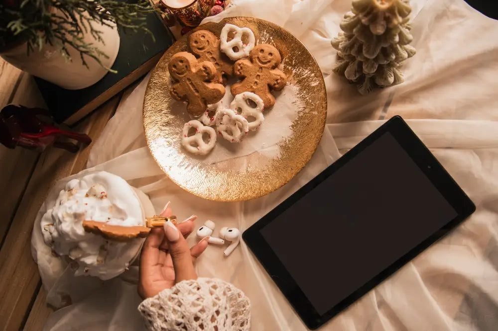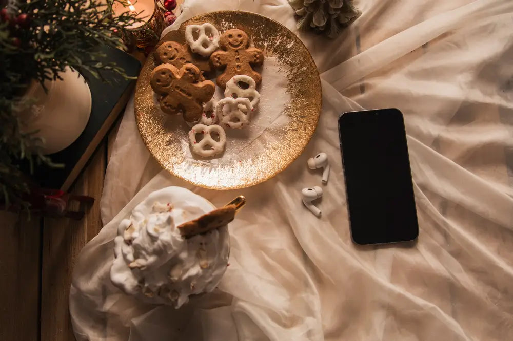SEO Keywords: cozy Christmas flatlays, warm holiday visuals, seasonal lifestyle stock photos, Christmas morning aesthetic, festive branding images.