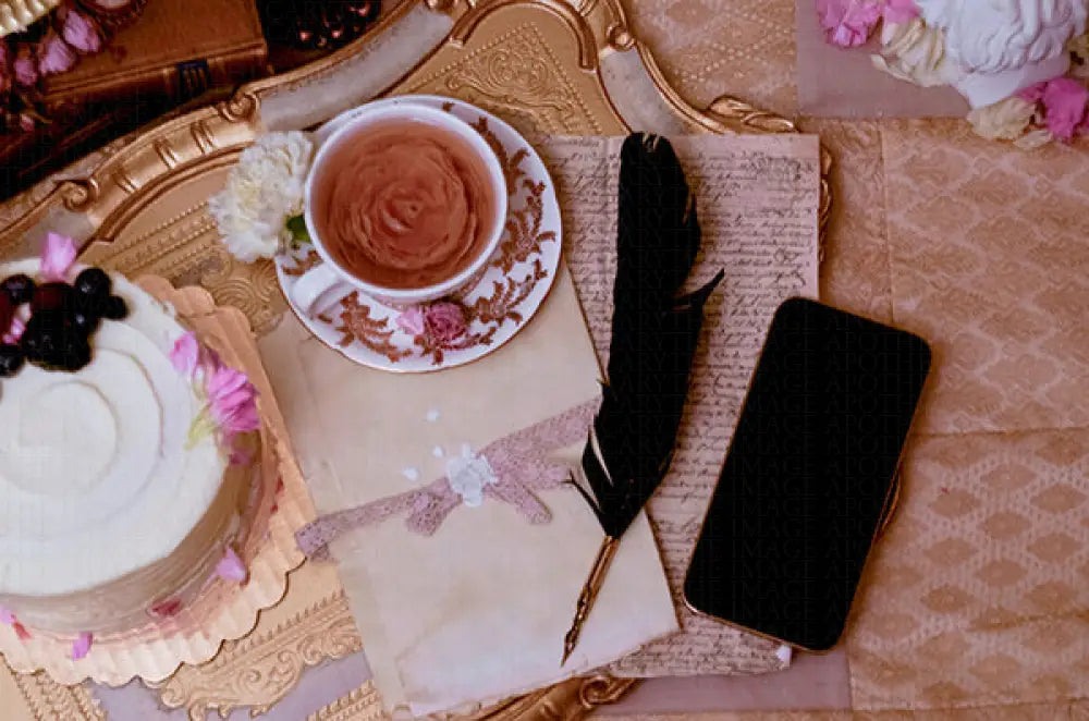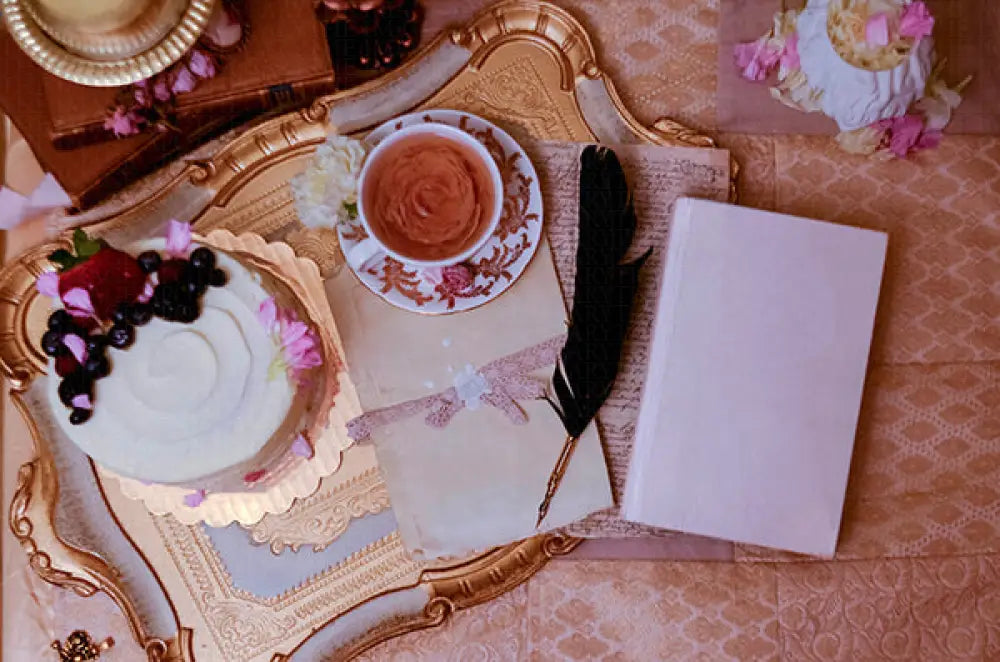 "Royal Heirloom" is a sumptuous flat lay stock photo set tailored for authors and book content creators, adorned with vintage royal props and imbued with a light Regency romance vibe, ideal for crafting stories of timeless elegance and noble allure.
