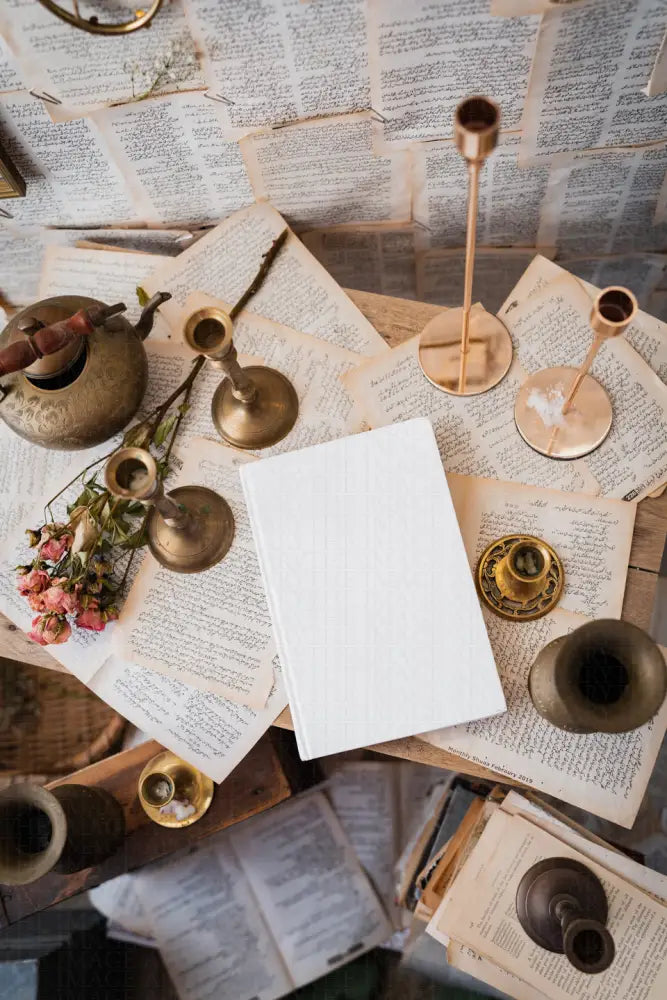 Filled with beautiful gold antique details & old books, this set is ready to bring your story to life!